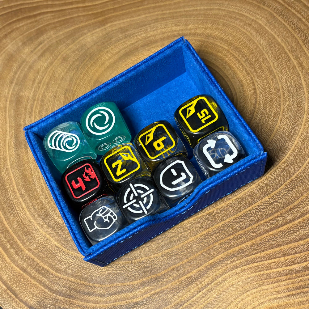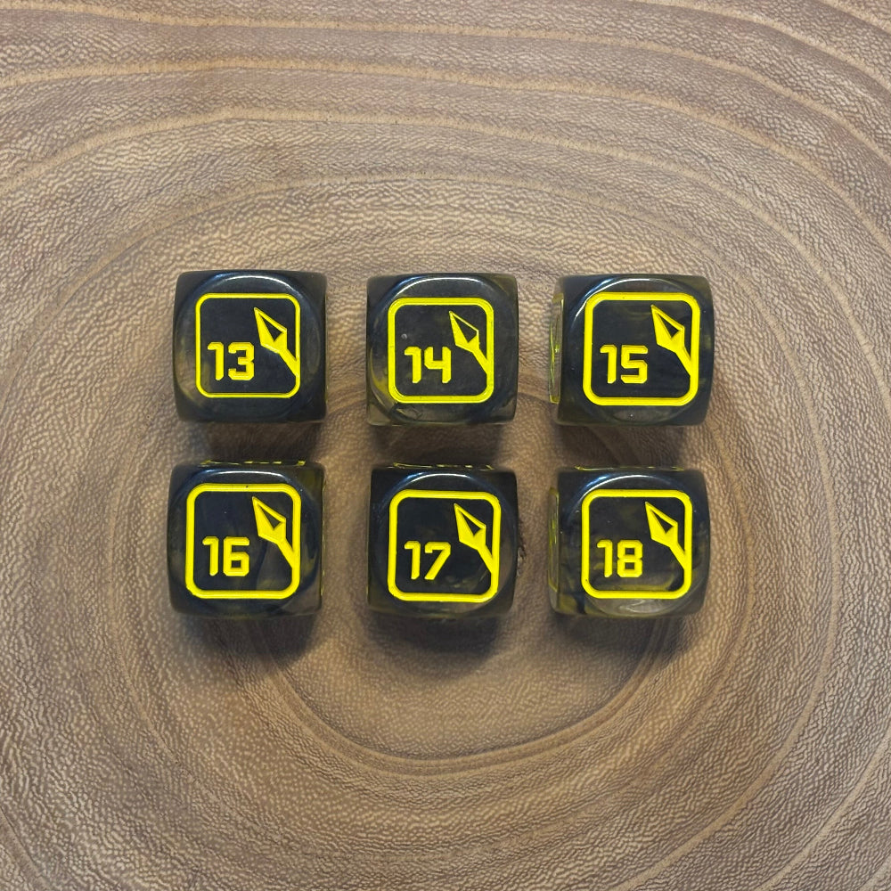 Die Würfel sind durch ihre Abmessungen ideal für Spiele sowohl in Person als auch für das Streamen oder Spielen mit einer Webcam geeignet, wie Du auf dem Produktfoto erkennen kannst. Du kannst sie also platzsparend mitnehmen, ohne Nachteil bei Online-Veranstaltungen.
