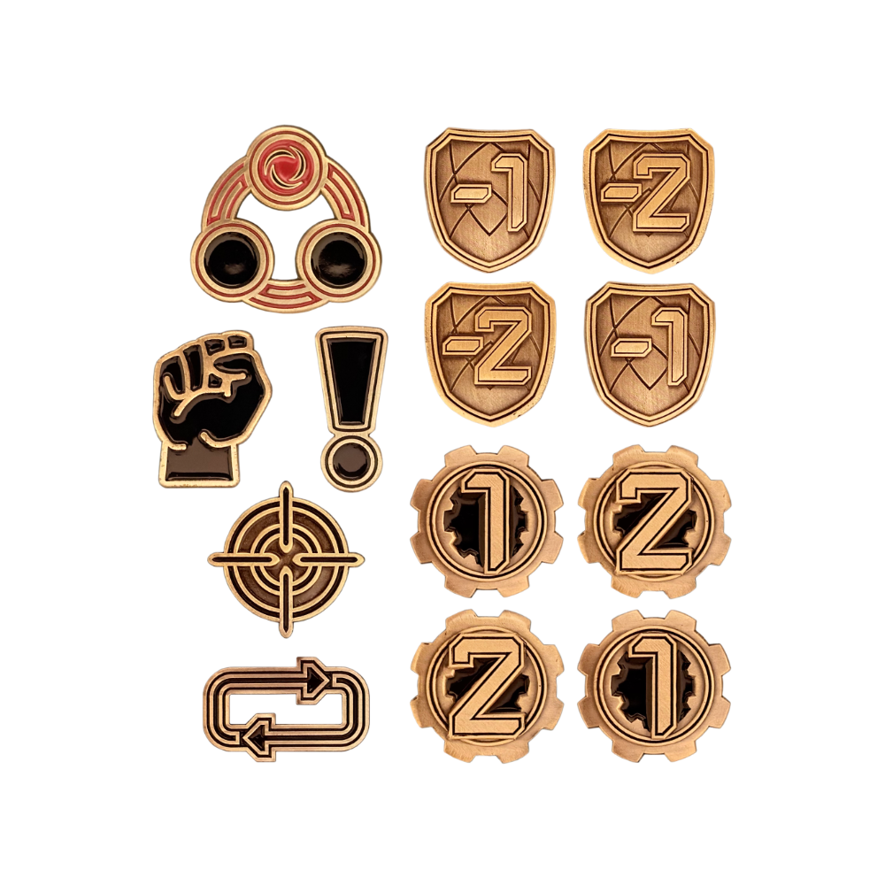 - Shield Token: 22 mm x 19,5 mm x 3 mm